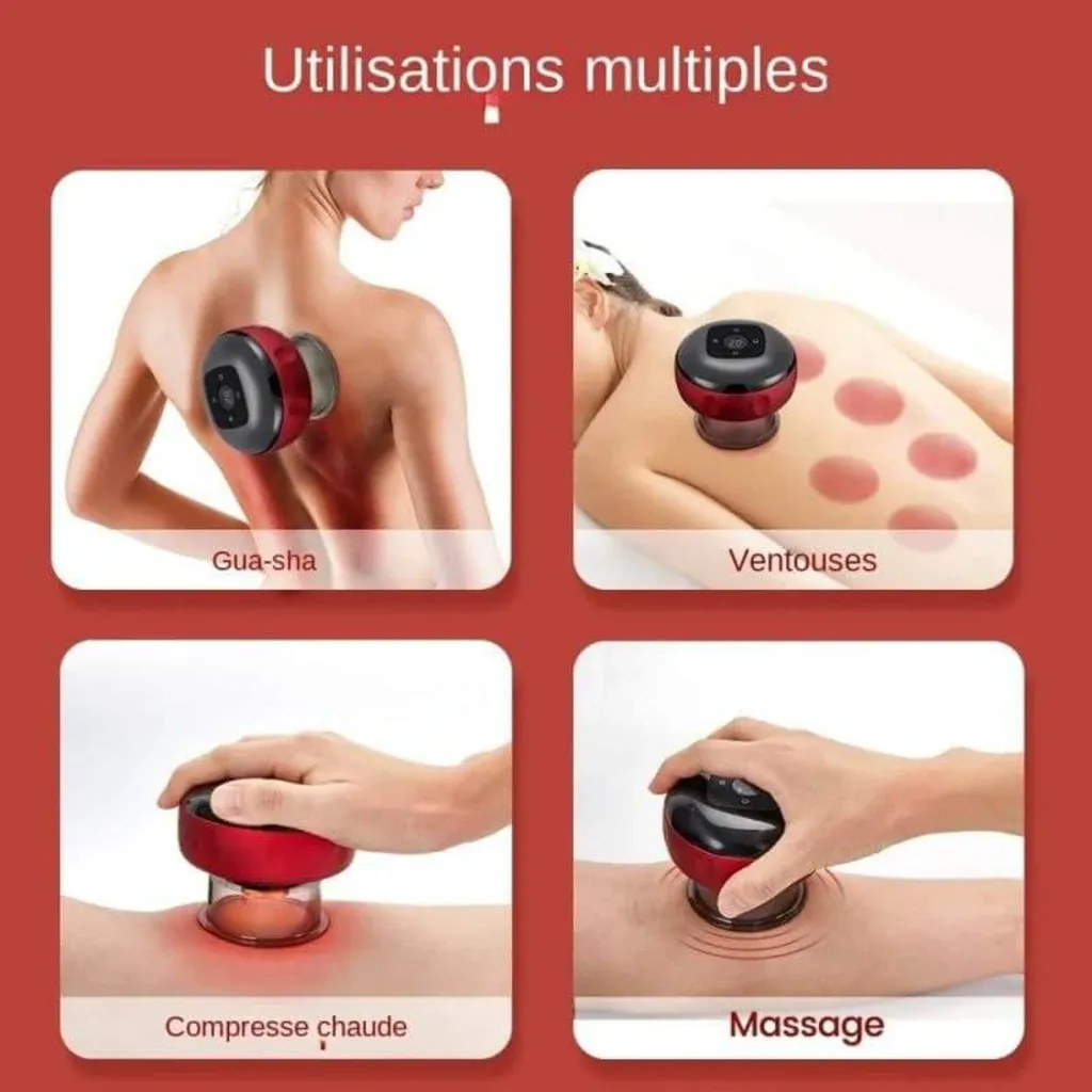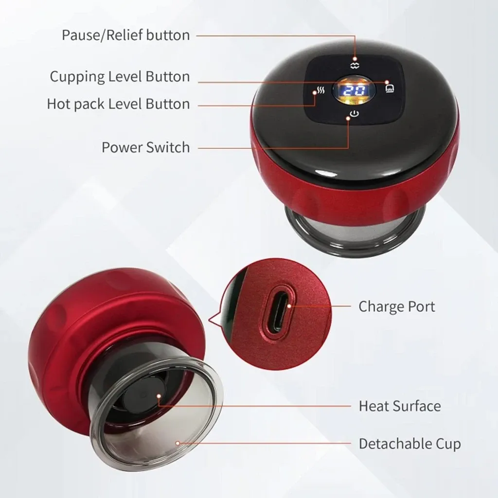 الجهاز بيجمع بين تقنية الشفط + الحرارة + التدليك في جهاز واحد، وده بيساعد على تحسين الدورة الدموية وتخفيف آلام العضلات بطريقة سهلة وآمنة.