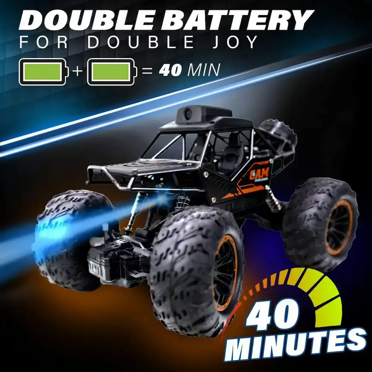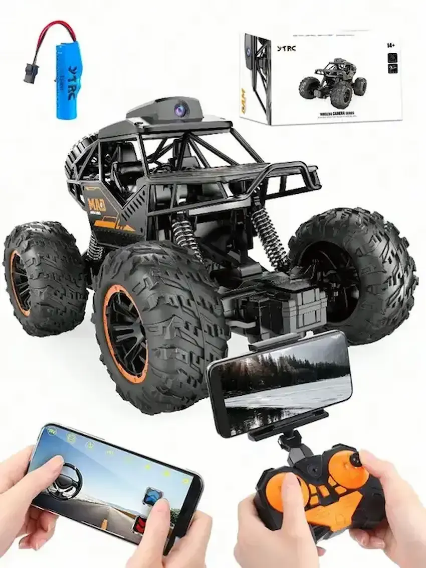 تصميم قوي بهيكل من السبائك المعدنية، وعجلات ضخمة لمواجهة أصعب الطرق. مزودة بكاميرا بث مباشر تربطها بموبايلك عشان تعيش المغامرة وكأنك جوه العربية. سواء كنت في البيت أو في الشارع أو حتى على الجبال والطرقات الوعرة، المتعة مضمونة!
