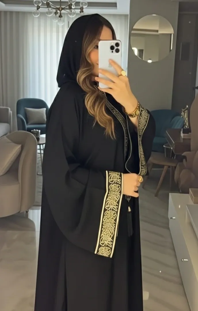 العباية بتصميم عملي يناسب كل الأوقات، وتقدر تلبسيها بسهولة في خروجاتك أو في المناسبات بدون ما تحتاجي تضيفي عليها أي تفاصيل.